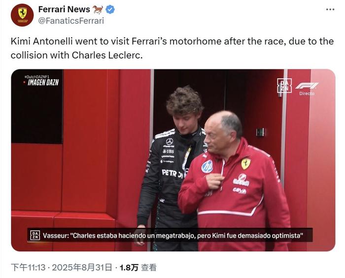 开云-安东内利赛后赴法拉利Motorhome致歉